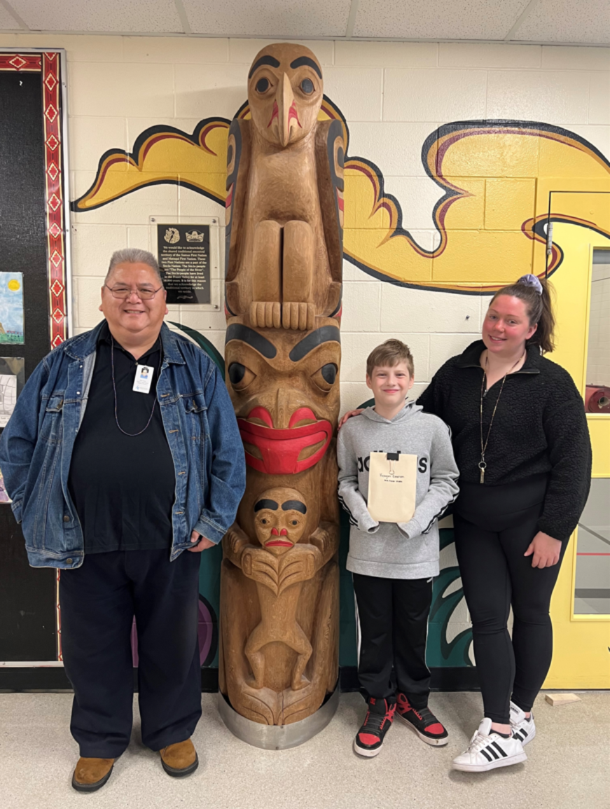 A secondary image, the design of a Sasquatch footprint, was created by Keagan Emerson, a grade 6 student. Keagan is a Métis student at W.A. Fraser Middle School.