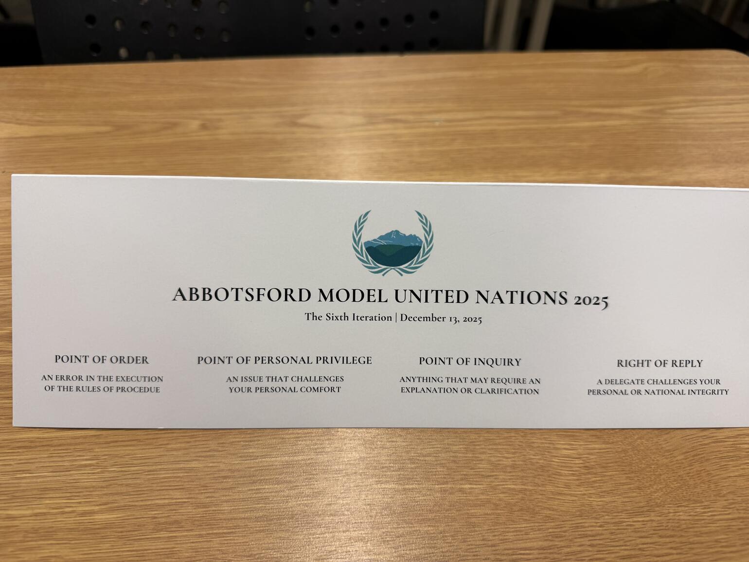 The Abby Model United Nations (Abby MUN) conference began in 2019 as a small, beginner-focused event. In its first year, it welcomed about 30 students from two Abbotsford schools. Today, it has grown into a major regional conference, hosting 130 student delegates from nine schools across Abbotsford, Surrey, Burnaby, Vancouver, and North Vancouver.